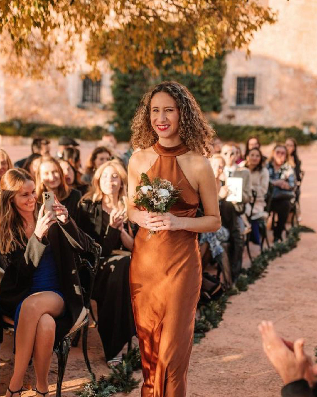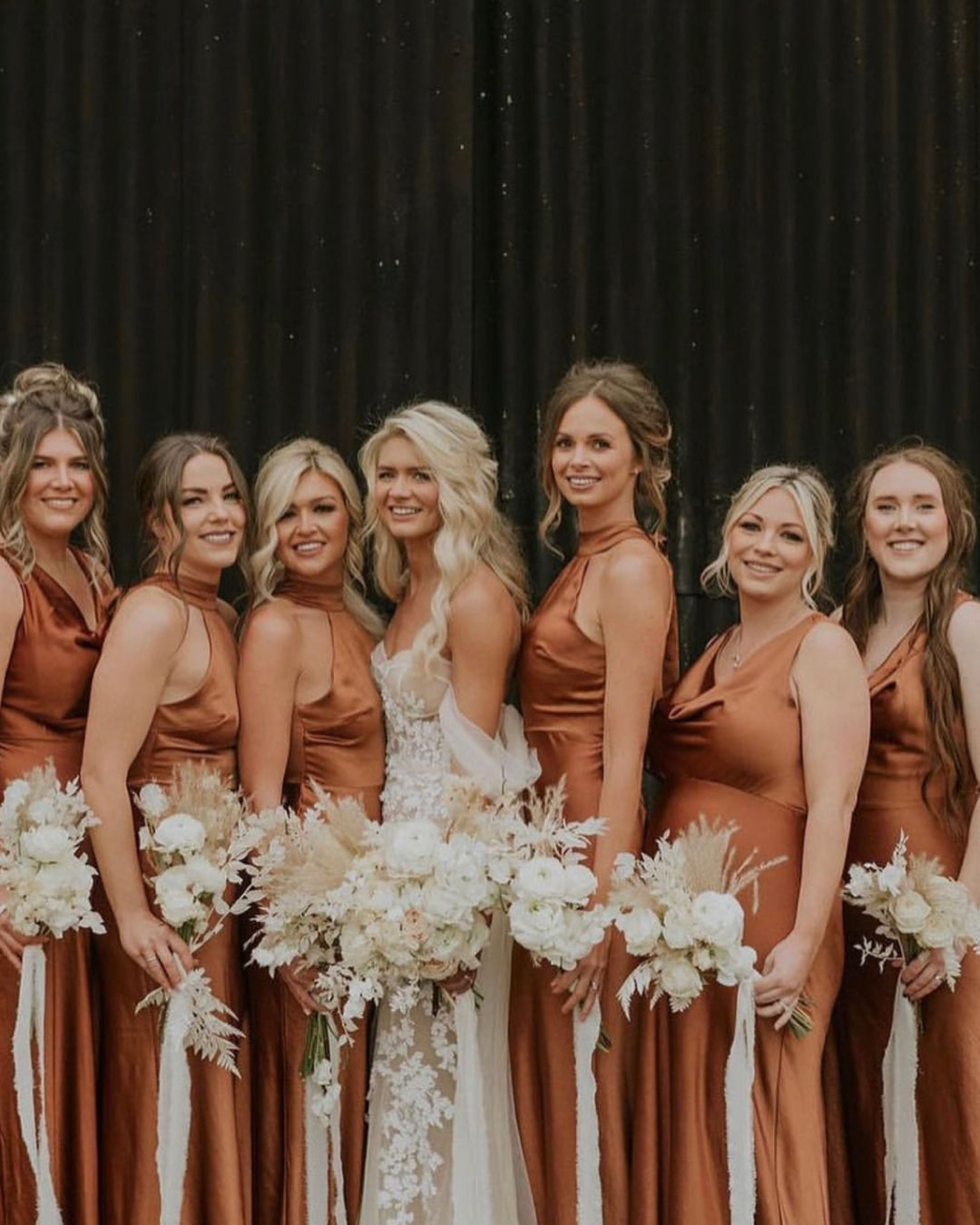 Your bridesmaids will feel their most confident self in this modern halterneck gown. With low back detail and cinched waist to create an hourglass shape.They will look and feel incredible.