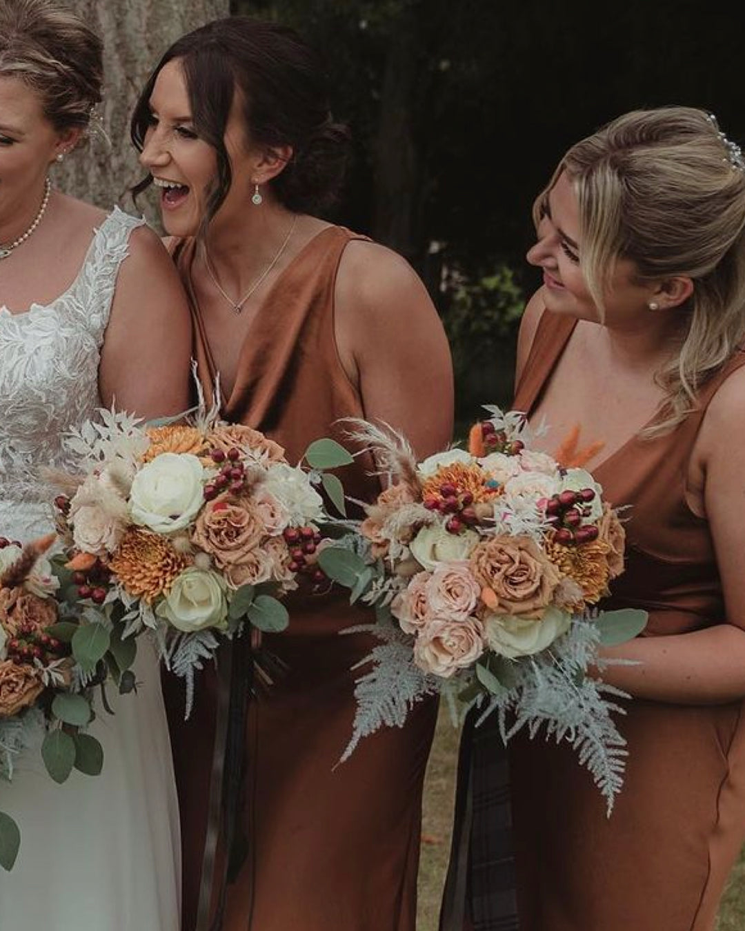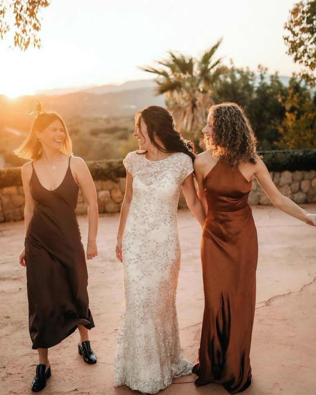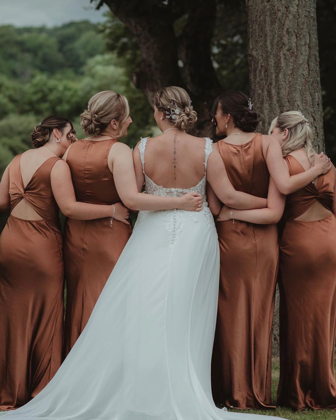• Top tip: Keep each dress in their dust bags until the morning of wedding. Hang up the night before/morning of and give them a light steam to iron out all creases. Keep hung until ready to wear
