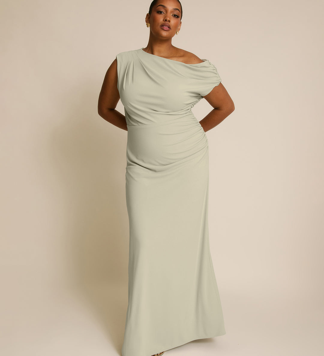Asymmetric Neck Stretch Sculpt Bridesmaid Dress - Soft Sage