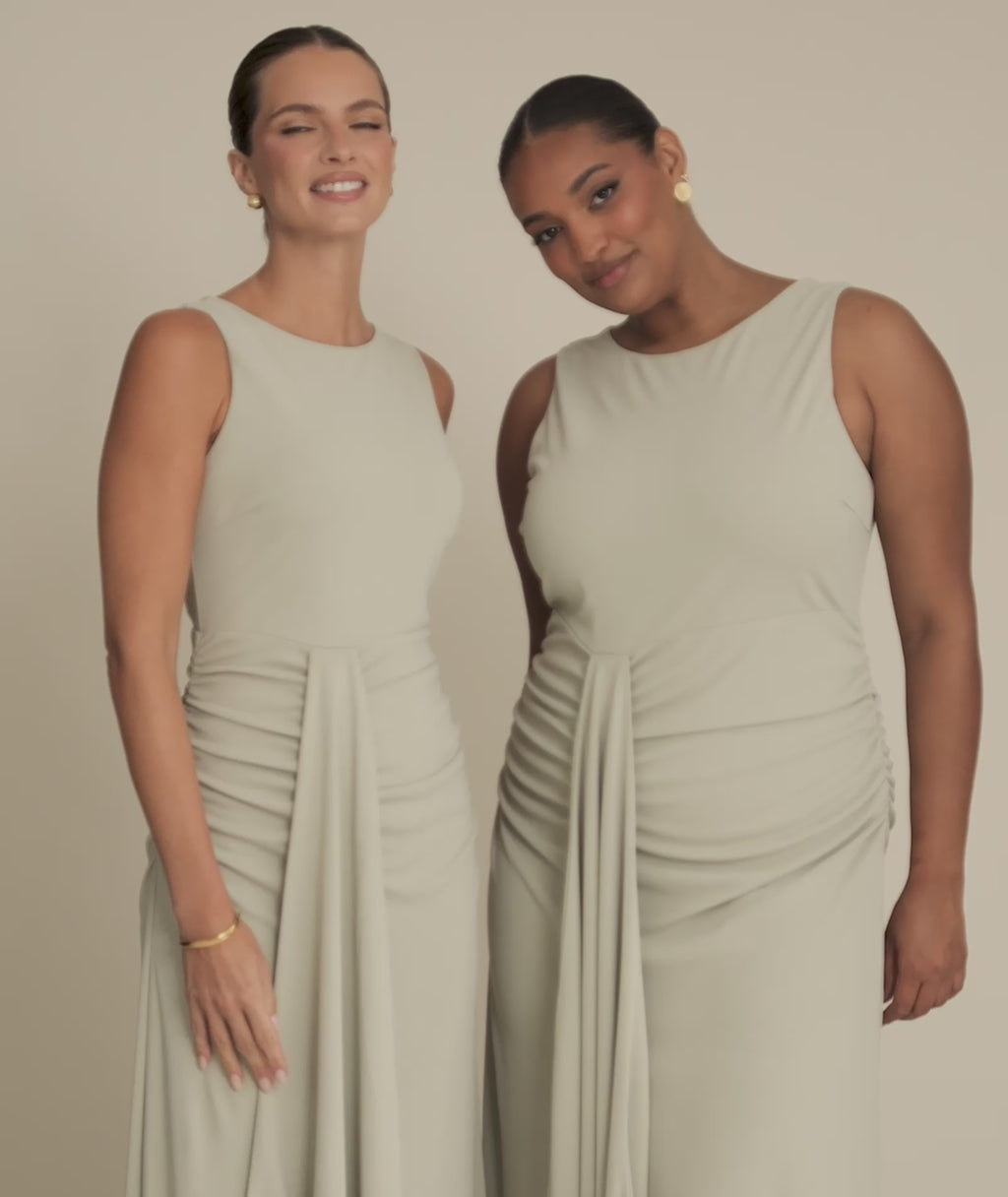 ISA in Sage is understated elegance at its best. Flowing drapes flatter every curve while the matte sculpting fabric makes it comfortable and confidence-giving. A chic, modern bridesmaid dress that stands the test of time. Bra-friendly and utterly gorgeous.