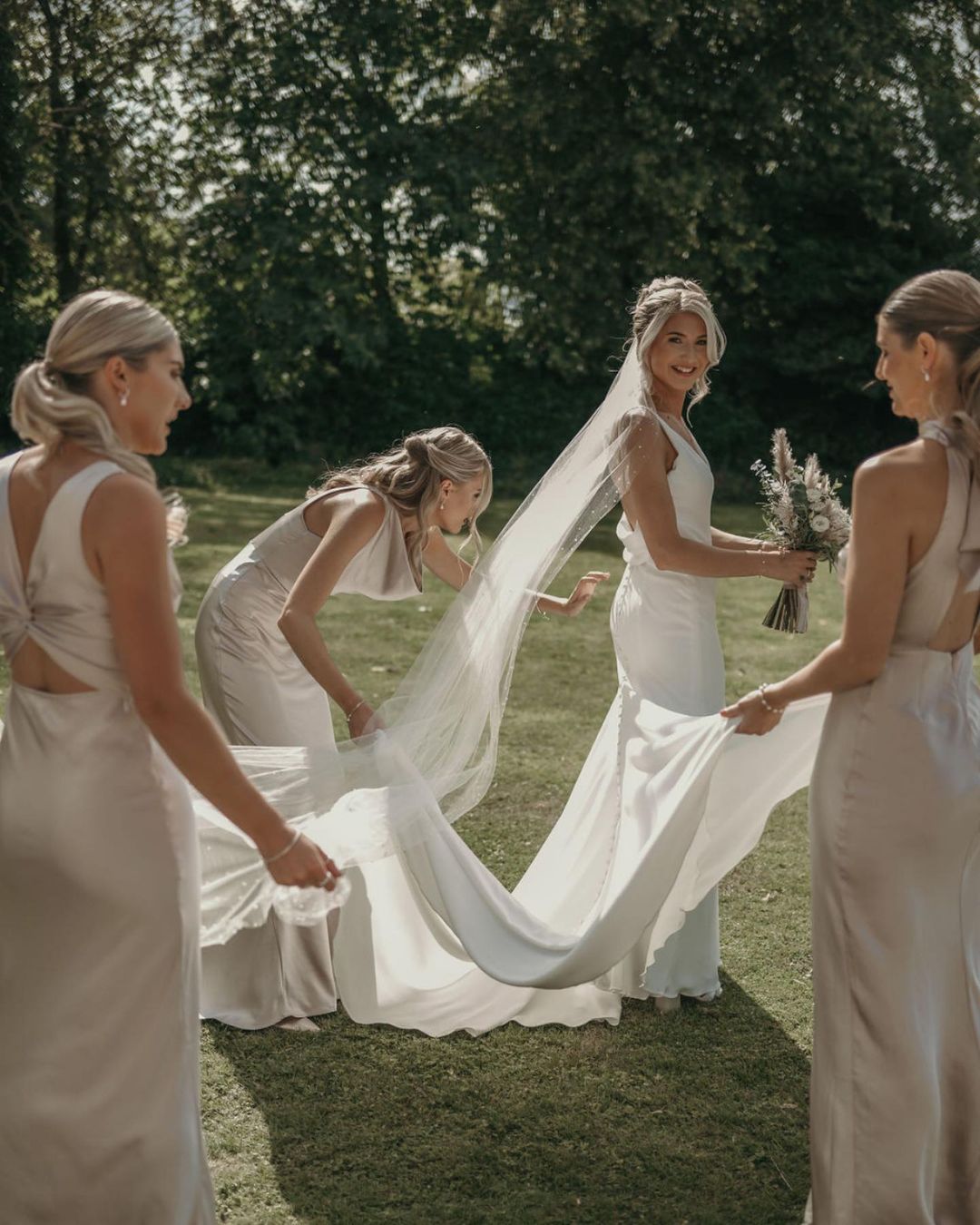 • Top tip: Keep each dress in their dust bags until the morning of wedding. Hang up the night before/morning of and give them a light steam to iron out all creases. Keep hung until ready to wear