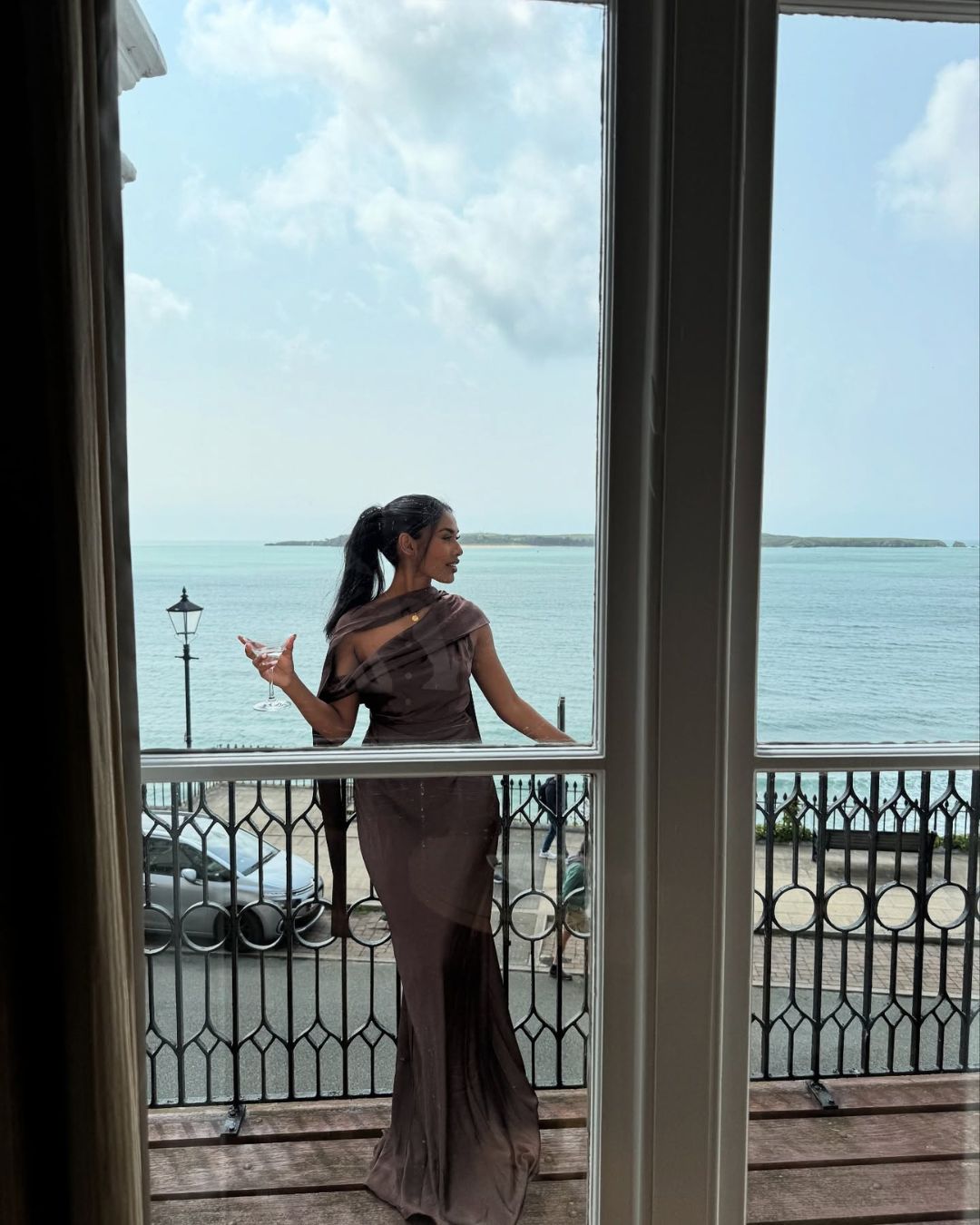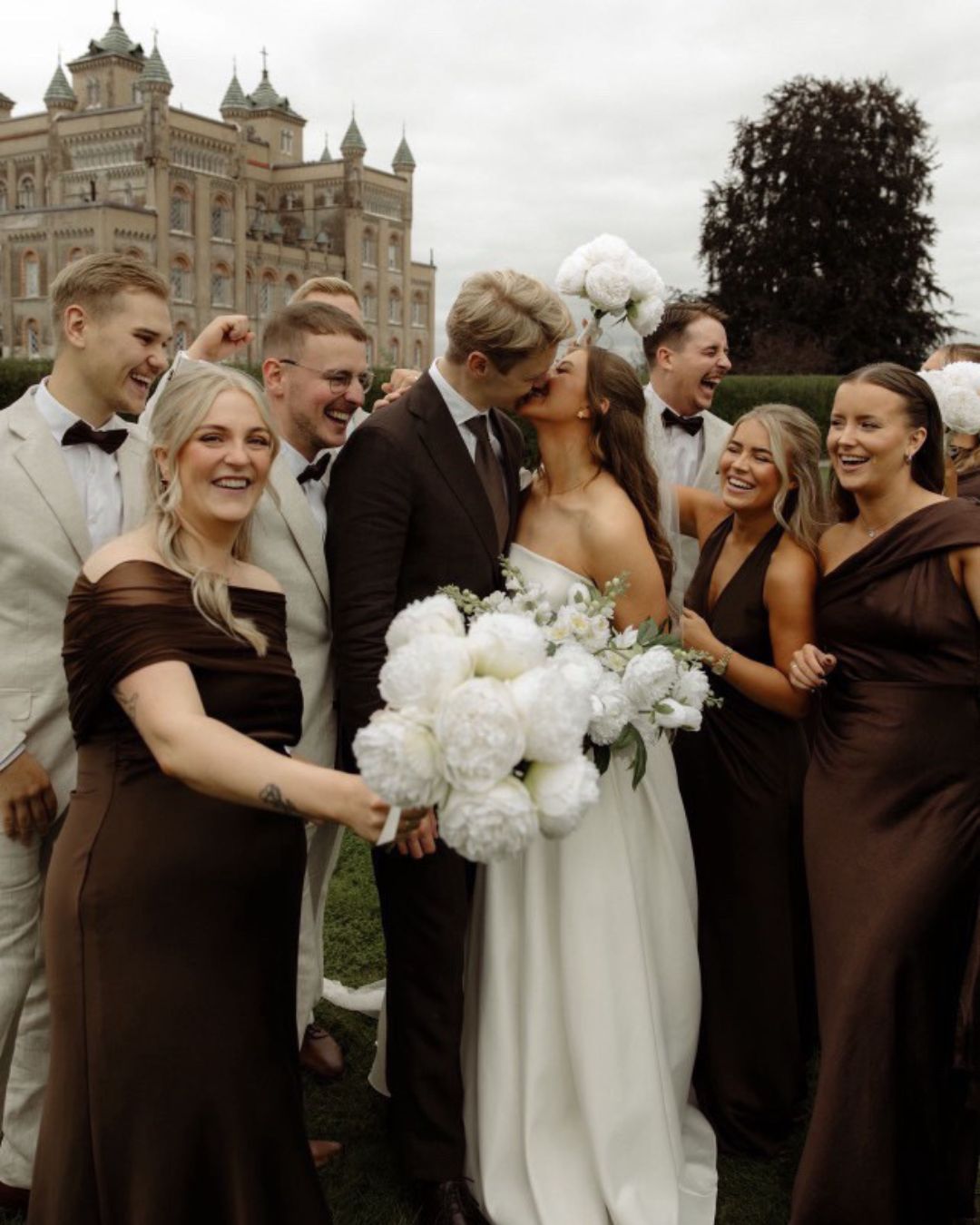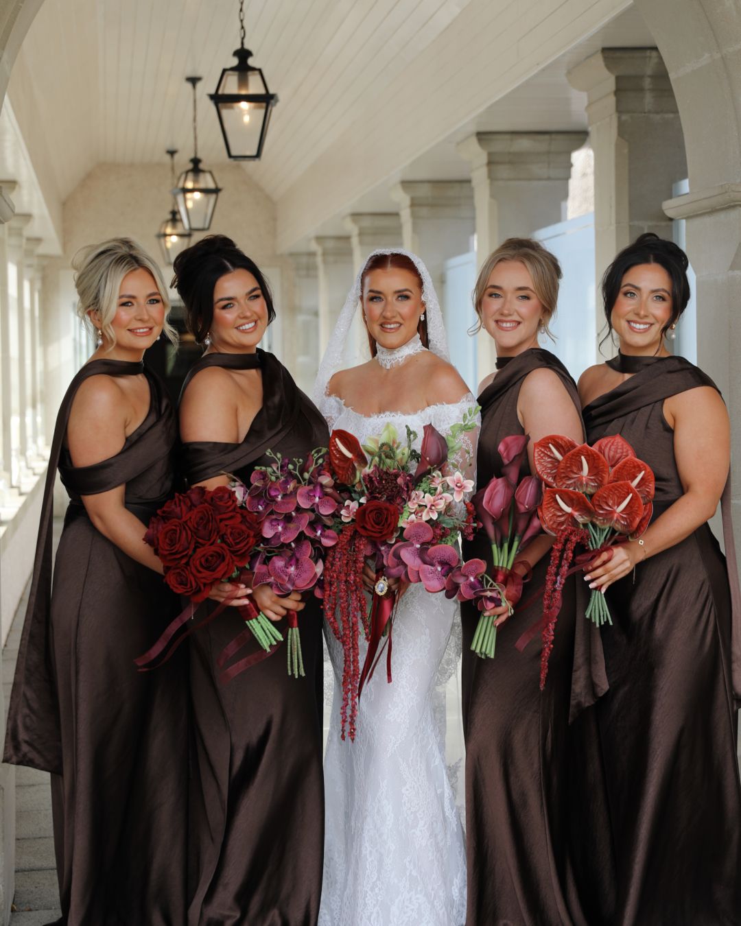 Modern, minimal, and made to make a statement. With its sleek racer neckline and tie-back detail, this chocolate satin dress brings just the right amount of drama. A perfect pick for bridesmaids who want something a little different - but still timeless.